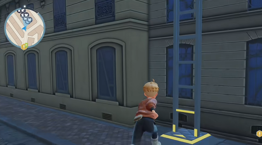3、往这个十字路口跑,在这附近寻找一个梯子,顺着梯子爬上去