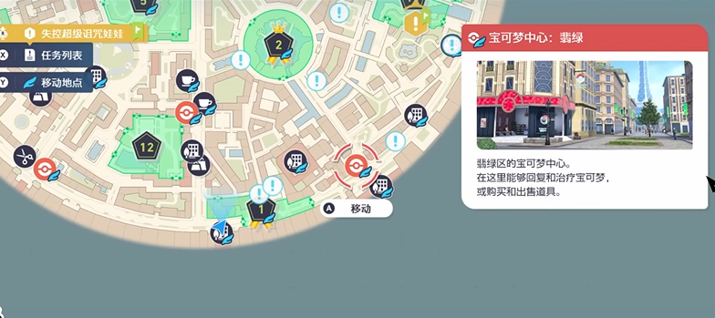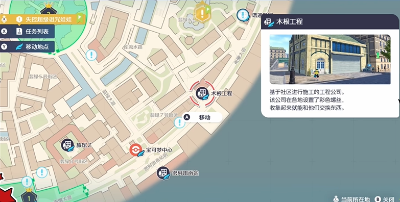 2、在那之后,你会在地图上时不时捡到一些彩色的螺丝,捡到至少3个后,我们打开地图飞到右下角的“宝可梦中心:翡绿”
