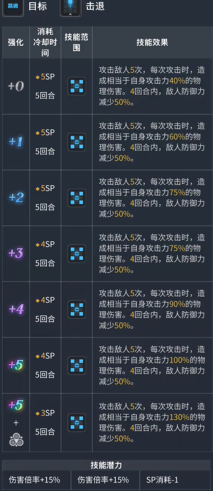 2、技能顺序是先进行攻击,然后再减少敌人物防,因此第1次攻击吃不到自己的减防,只有后面4次攻击能吃到。