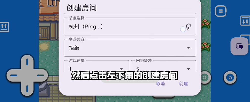 2、这个时候就需要注册账号并登录了,然后点击左下角的创建房间。节点刷新一下,选择哪个节点都可以