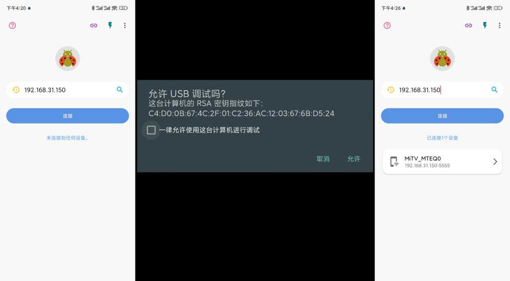 1、Android手机或电视必须开启“开发者模式”,然后开启“USB调试”功能。