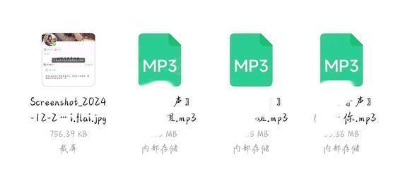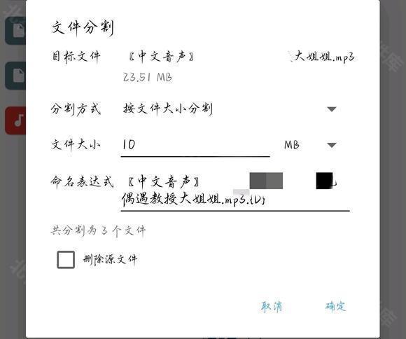 ③如图所示,我们已经将音频文件分割成若干个大小为10Mb的文件(注意,分割后若干个文件名的后缀会多出来序号,需要自行删除,后缀必须是.mp3)