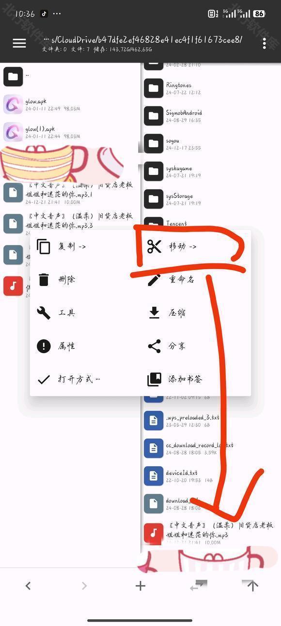 ⑤我们用同样的方法,点击移动,移动到右边后就好啦(记得删掉排序后缀,始终保持.mp3)