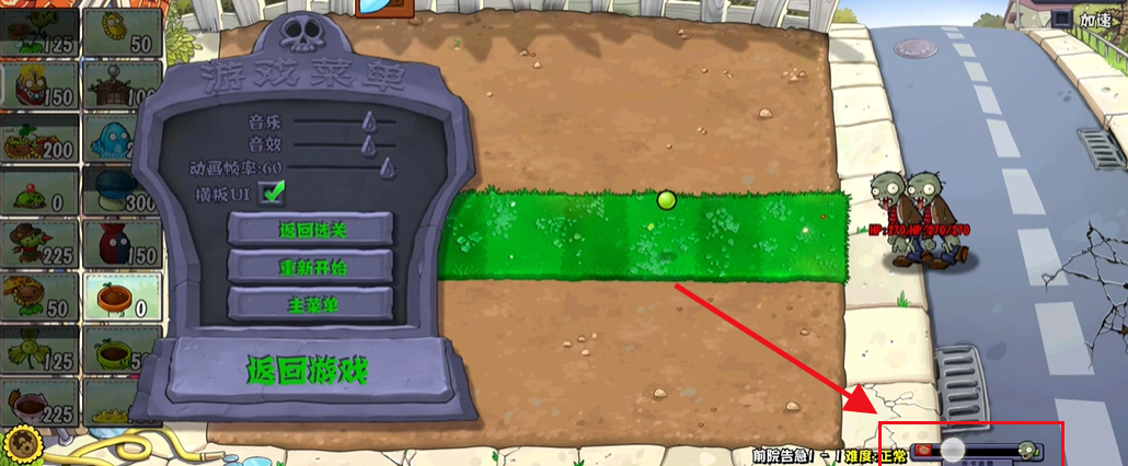 2、关卡正式开始后,注意屏幕右下角有一个【僵尸进度条】