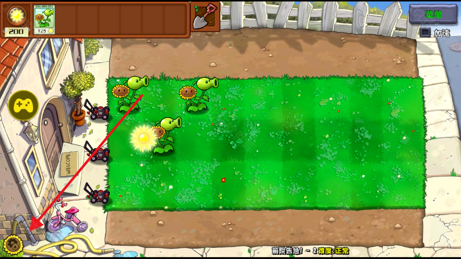 2、同样随便进入一个关卡,点击左下角向日葵形状的设置按钮