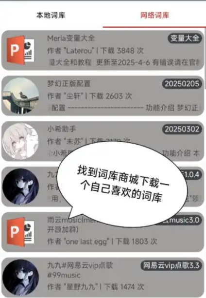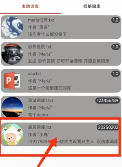 5、切换回本地词库,找到我们下载好的词库,进行绑定登录的机器人账号
