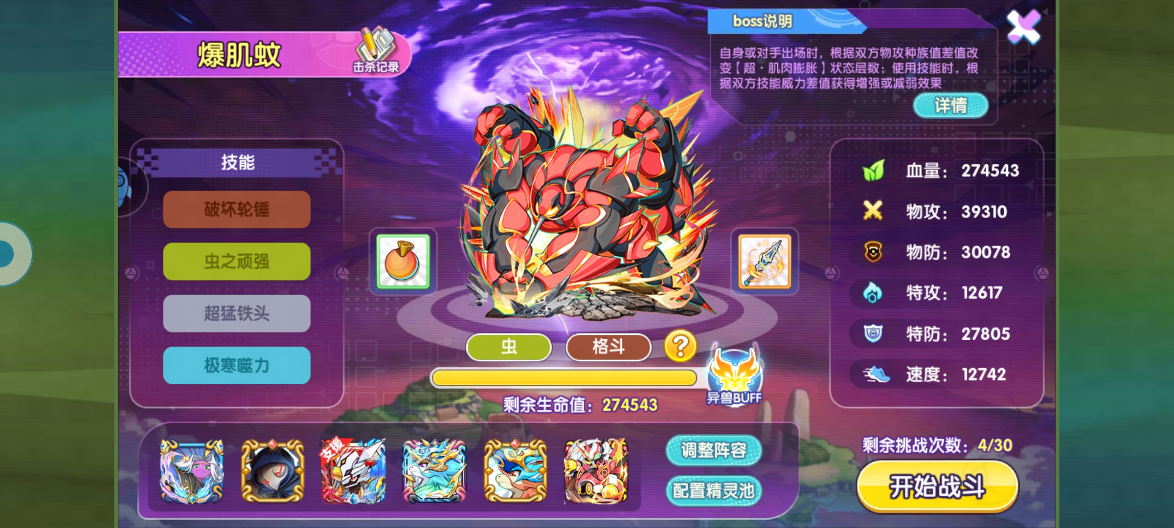 3、可以看出,它只要秒杀不掉,就可以一直强化一直吸血,几乎无敌,而我们可以另辟跷径,用状态磨掉。