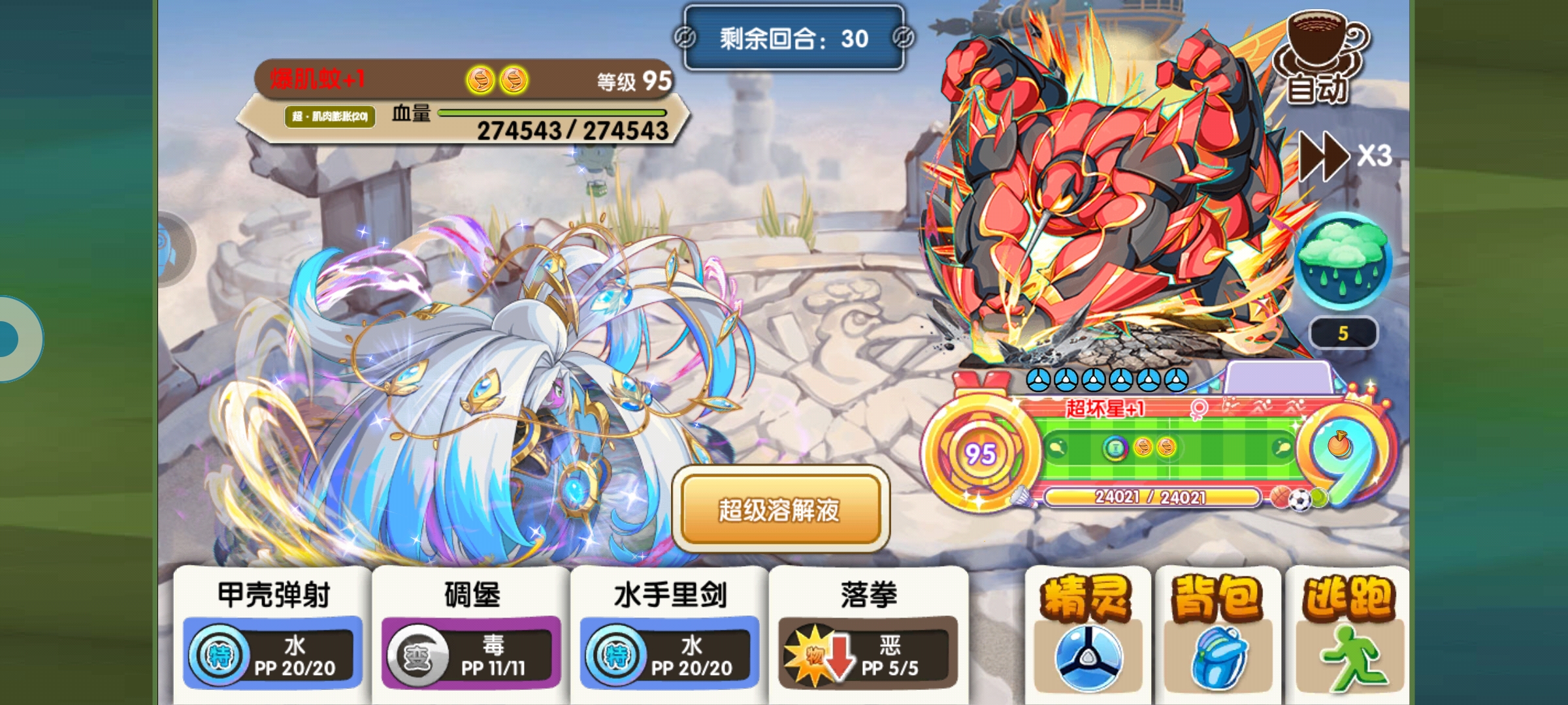 2、这个就是用火暴兽直接打,用4倍克制的火本,自己没有也可以用公会援助借的火暴兽,直接梵天灭却,两三发可以干掉,而火爆有锁血,别用连环灼闪踢,会被对方免疫掉。