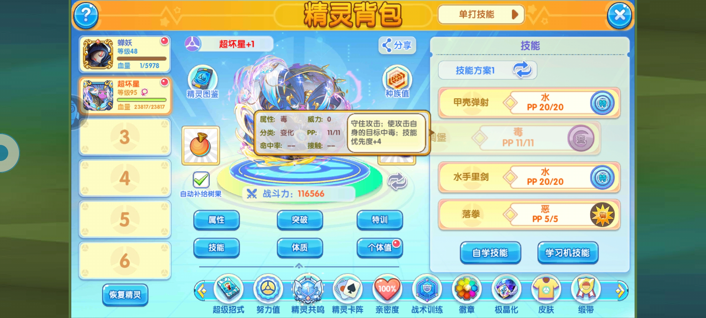 4、所以用超坏星,首发用碉堡,碉堡可以在防住对手攻击的同时,让接触到自己的对手中毒。