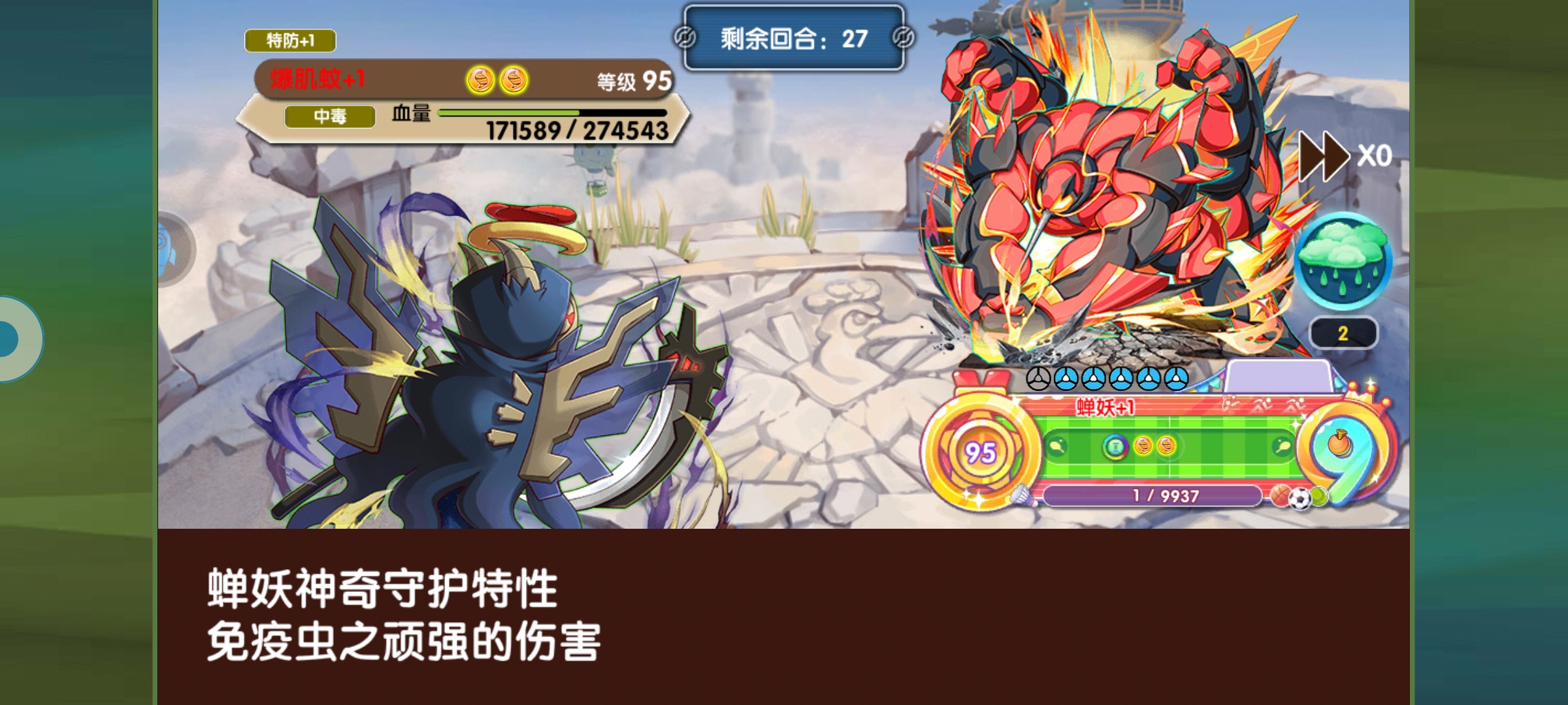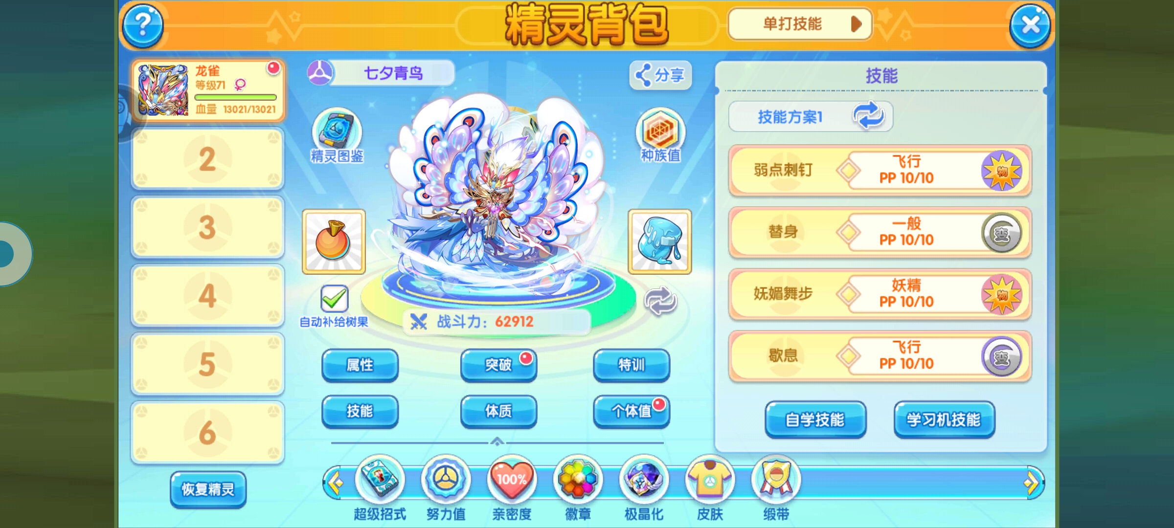 3、然后用七夕或者其他妖精宠去打,可以边打边吸血的那种,比如接个永恒鹿用复苏恩赐强化,自我复原拖延回合后继续强化,强化+6用妖本。