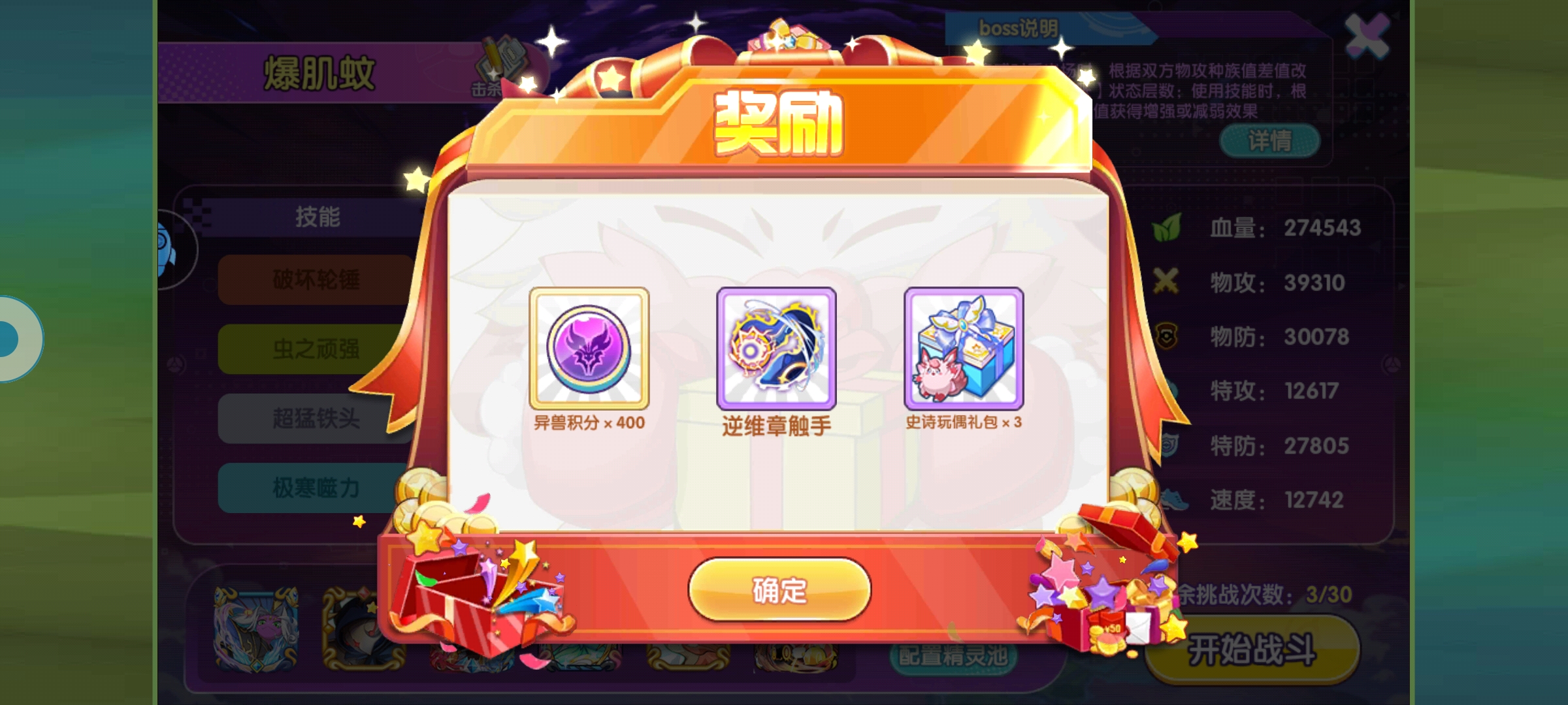 7、如果没有也可以借公会的,一直赖着回合,因为对方技能都打不到自己。所以最后boss就中毒自己死。