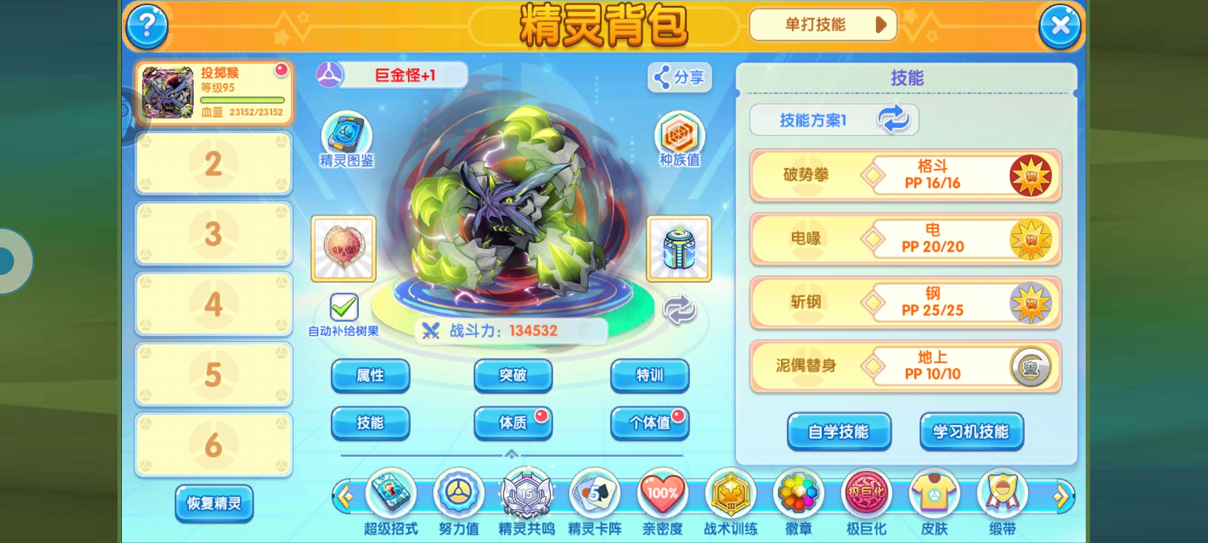 2、这个因为巨金电喙可以克制,上去先用妖精宠勾引下,让它用钢本打,然后触发巨金特性加成,接着的巨金怪一直打电喙凭借特性吸血就可以打过去,如果没有也可以公会援助借一个。