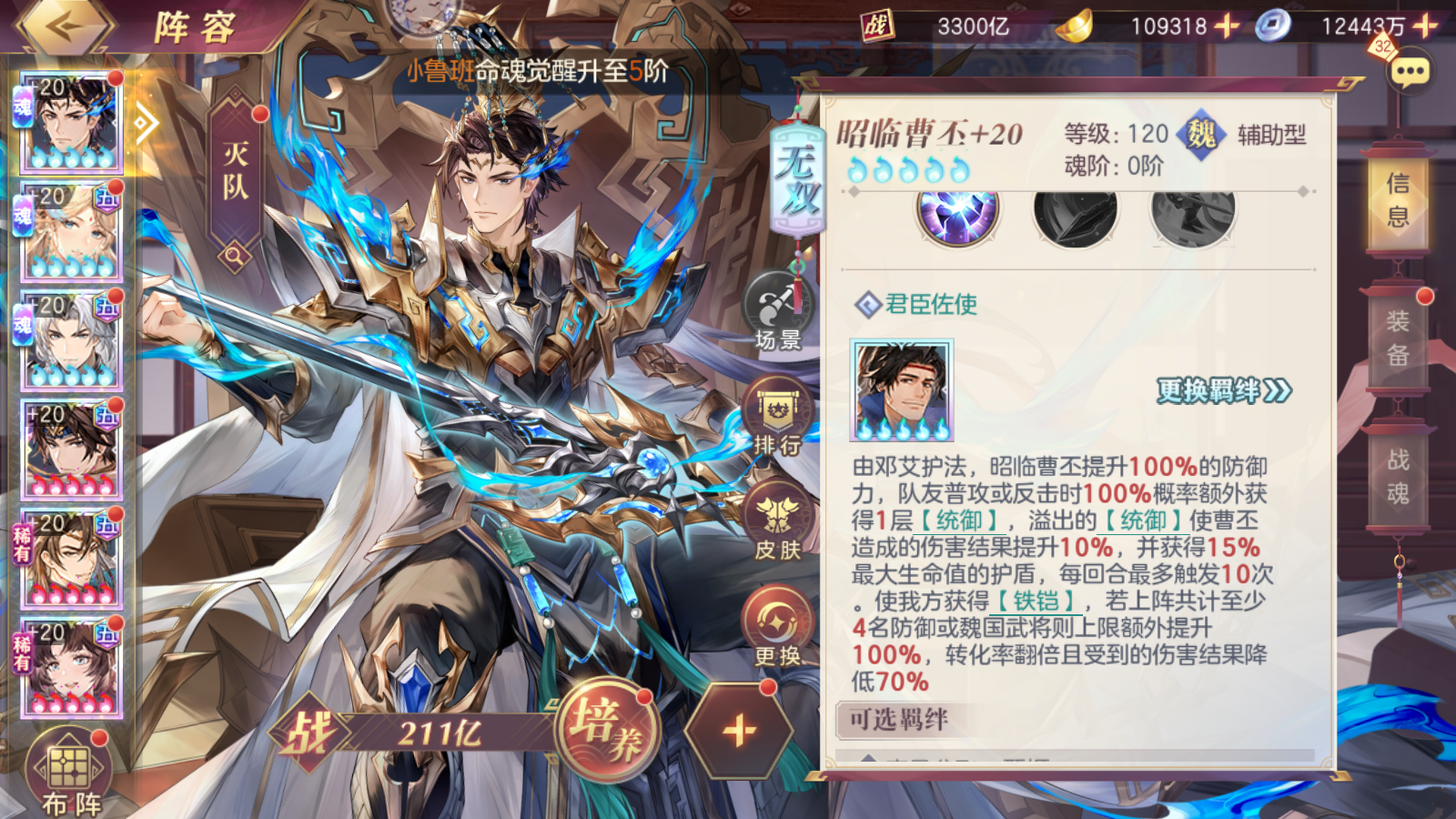 2、SP曹丕的另外一个羁绊为邓艾,羁绊比较偏向盾/魏,但由于羁绊上面有一条可以通过普攻触发效果,以及SP曹丕本身优秀的属性,因此除了配和盾以外还是可以加入现在的主流阵容蜀国队伍的,然后着重强调一下由于目前版本非盾的版本,因此虽然曹丕很契合盾,但目前来说还是比较可惜,SP曹丕本身强度就比较高,除了盾以外加入别的也可以,但是主要搭配上还是以蜀国为主。