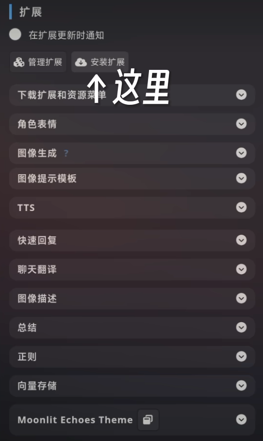 2、在该选项卡中,你可以管理与安装扩展插件,从而丰富酒馆的玩法