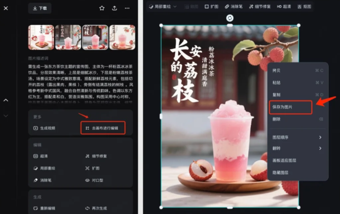 4、挑选一张自己满意的图片,点击“去画布进行编辑”,能够将其保存成无水印的高清图