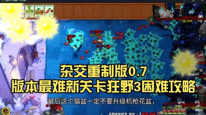 植物大战僵尸杂交重制版0.7版本更新了6个挑战关卡,分别是向日葵女王挑战1至3和狂野机枪射手挑战1至3,其中玩家普遍反应狂野机枪射手3困难难度非常高,不仅关卡很长而且一失误就要重打。下面为大家带来本关攻略,帮助各位攻克难关。