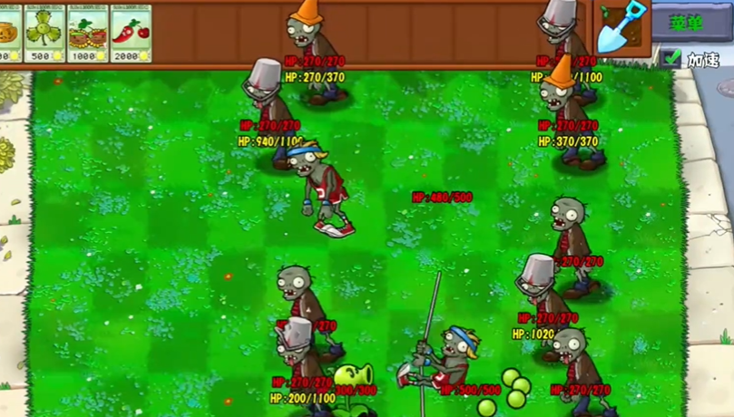 4、撑杆跳僵尸可以提前拿植物靠近,让僵尸跳出来,防止后面被撑杆跳过去后偷家