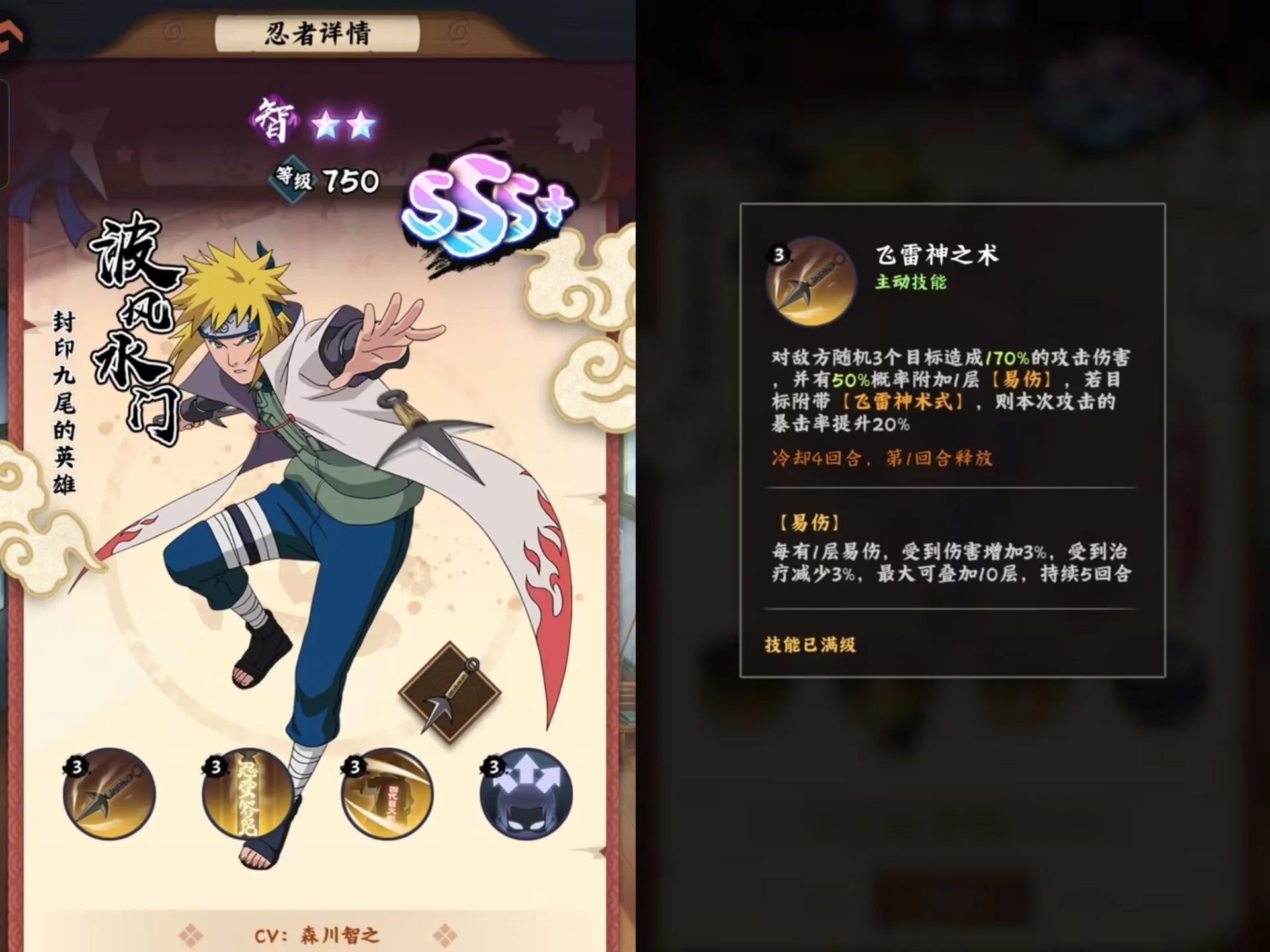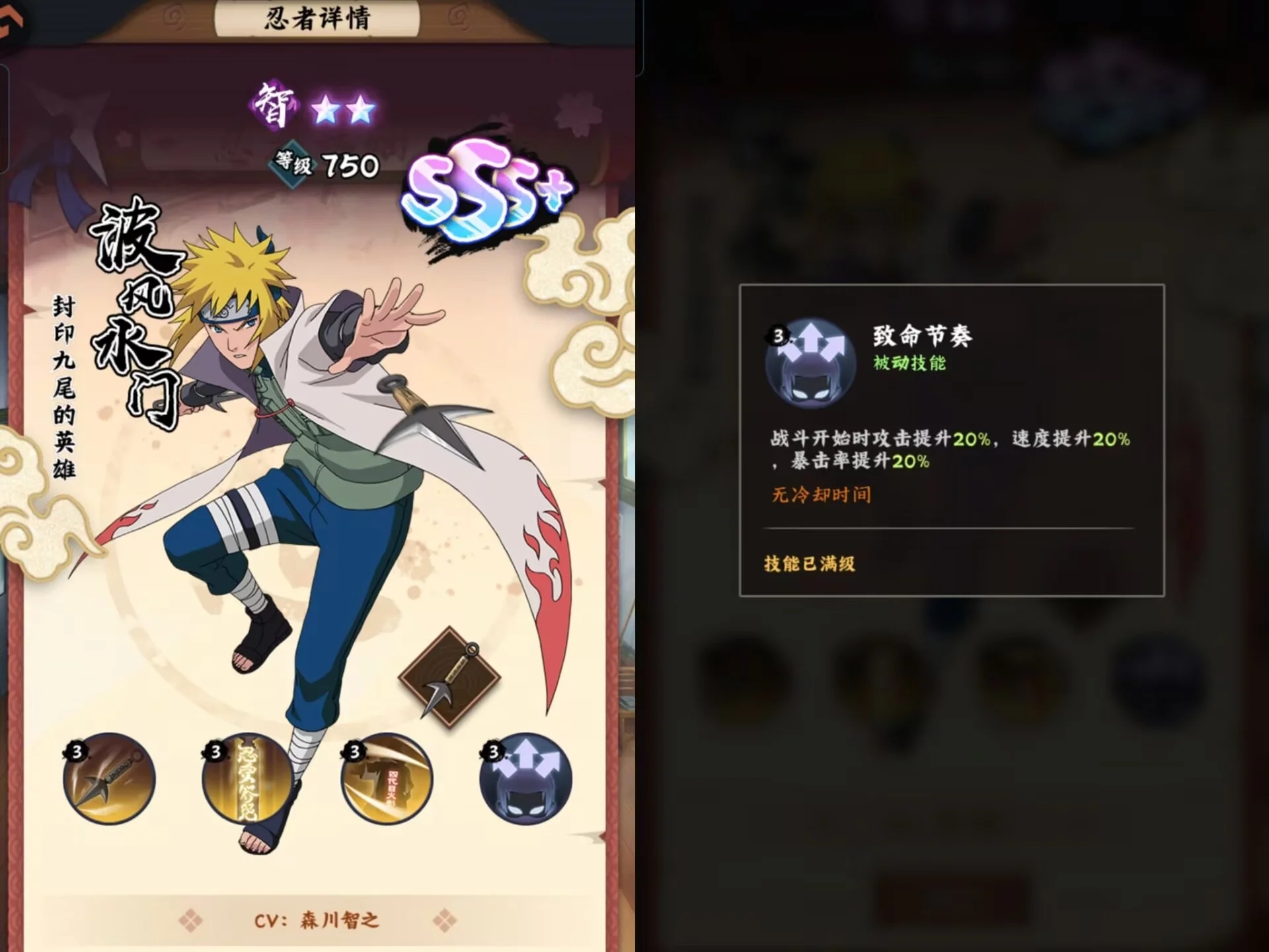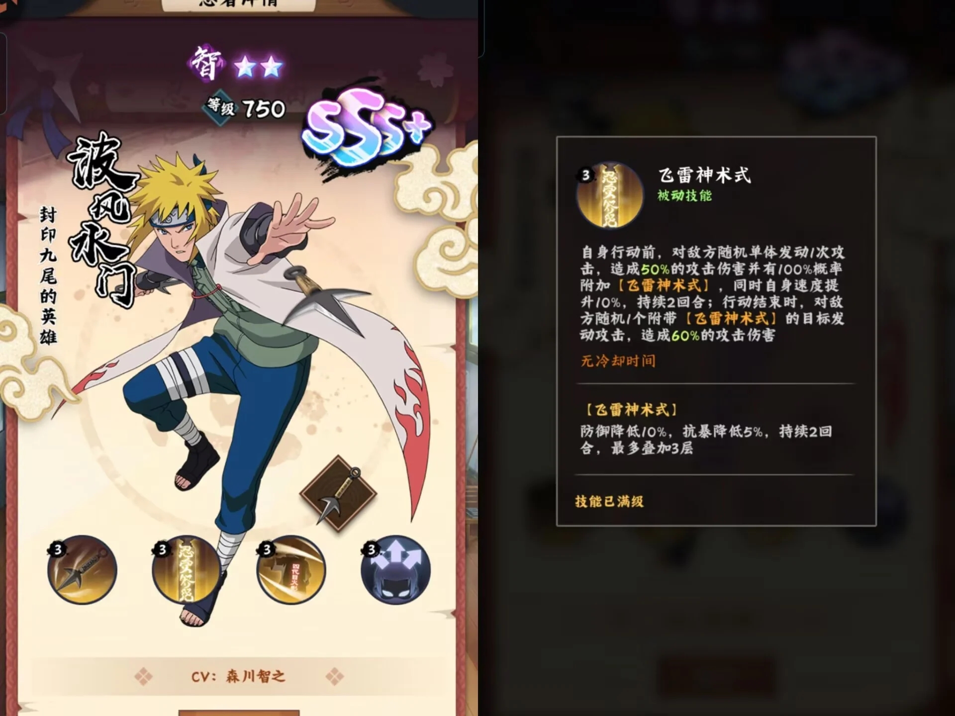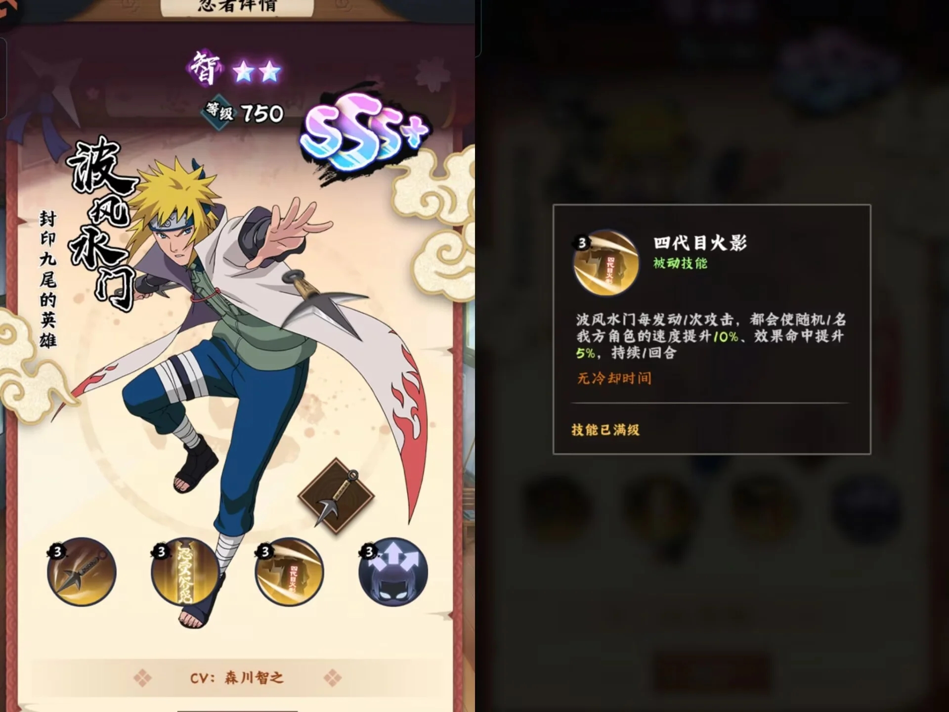 ②被动释放以后提升自身10%速度(因此水门的战斗中速度都是>其他忍者的)