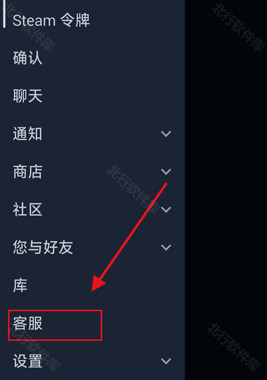 2、进入steam后,点击左上角“三”按钮,在左侧菜单中点击“客服”
