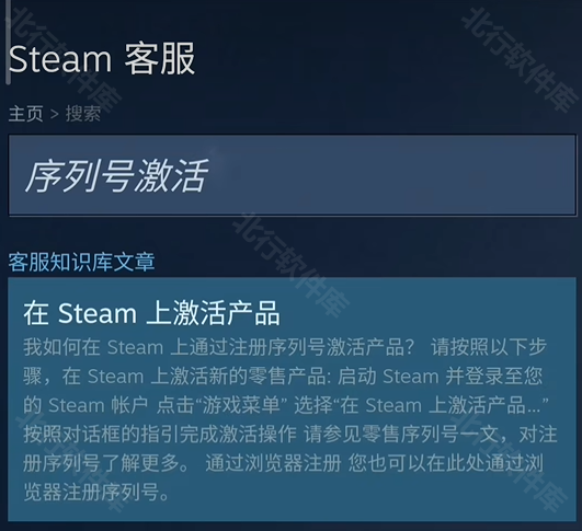 4、点击搜索结果中的“在 Steam 上激活产品”