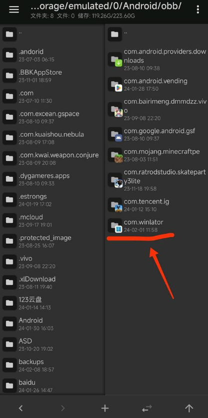 1、将已有的obb数据包放到storage/emulated/0/Android/obb/com.winlator里