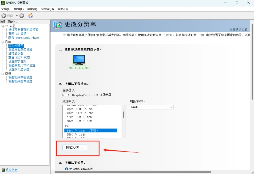 4、但是由于电脑显示器的分辨率和手机分辨率不同,导致游戏有黑边,玩起来特别不舒服。此时我们就可以在电脑桌面【右键-Nvidia 控制面板】中,自定义一个和手机相同的分辨率和刷新率