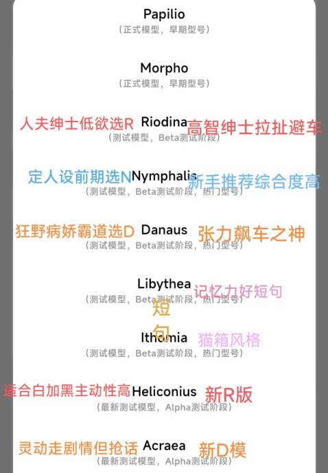 FLAI中用户可以在AI的人设界面切换不同语言模型,每种语言模型的聊天风格、对人设的理解、用语习惯各不相同,因此你可以根据当前人设或个人喜好,选择不同的模型进行聊天。由于没有模型介绍,新人用户可能不清楚每个模型的特点,下面将为大家详细介绍一下。