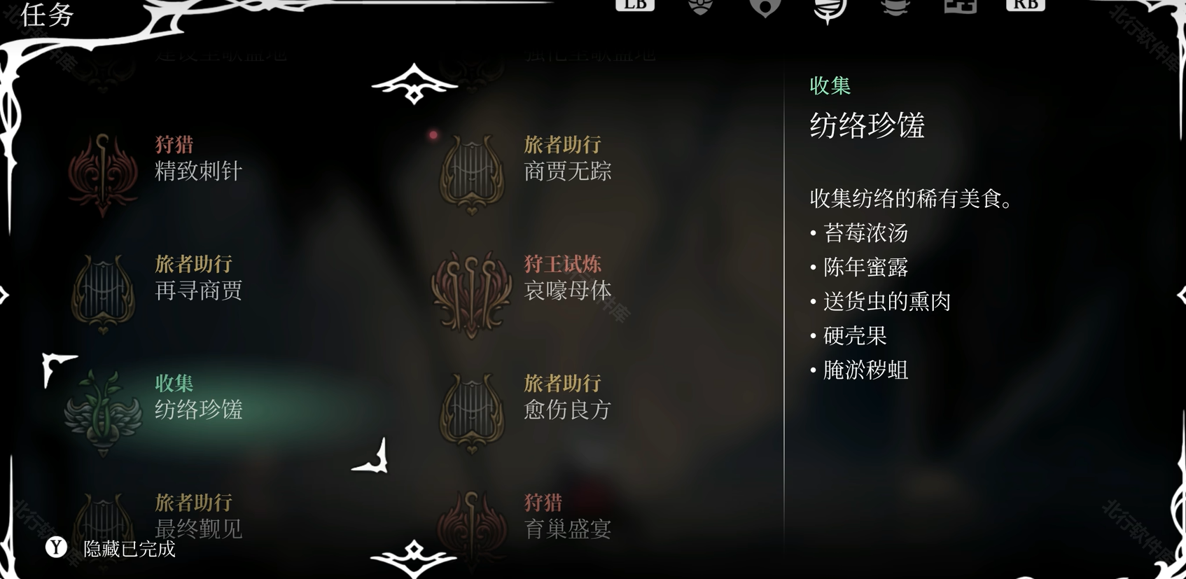 3级:完成纺络珍馐任务会给一个苍白油(收集苔莓浓汤、陈年蜜露、送货虫的熏肉、硬壳果、腌淤秽蛆)