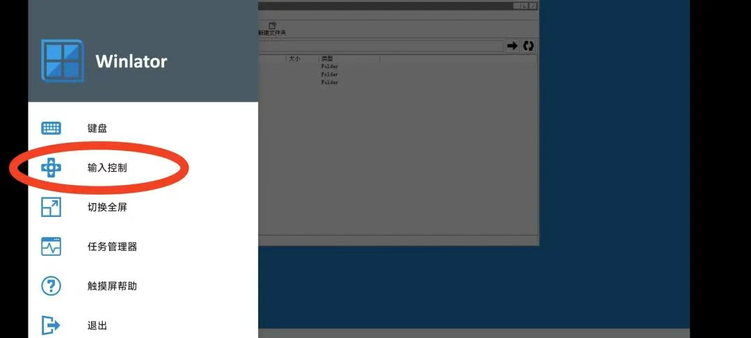 1、左滑屏幕,出现模拟器设置界面,点击输入控制