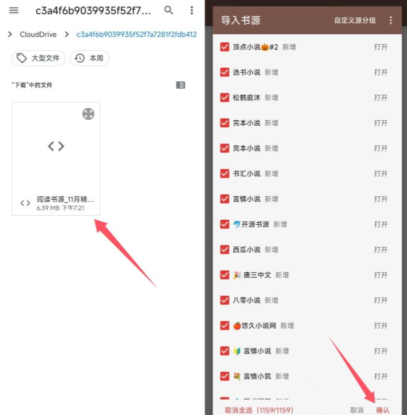 6、找到你下载到手机上的书源文件,点击书源文件,就可以导入了