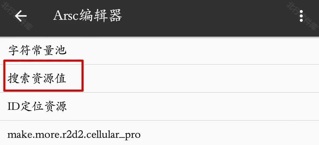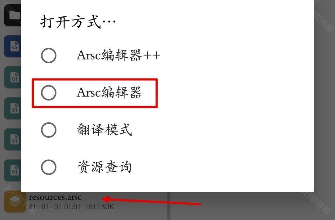 6、别担心,既然AndroidManifest.xml里面没有找到软件名,那么它还有可能在resources.arsc中。点击resources.arsc,选择arsc编辑器