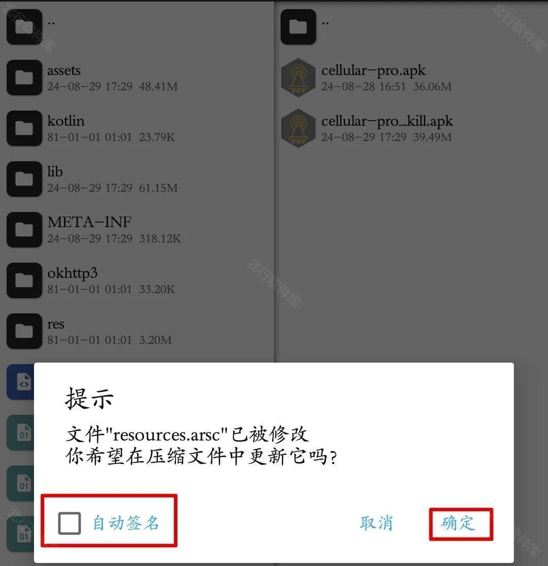 12、再点返回,它提示是否更新?不更新≠白干但会给自己找事干,还要重新删源文件。选择确定,左下角自动签名可以勾选也可以最后再签名