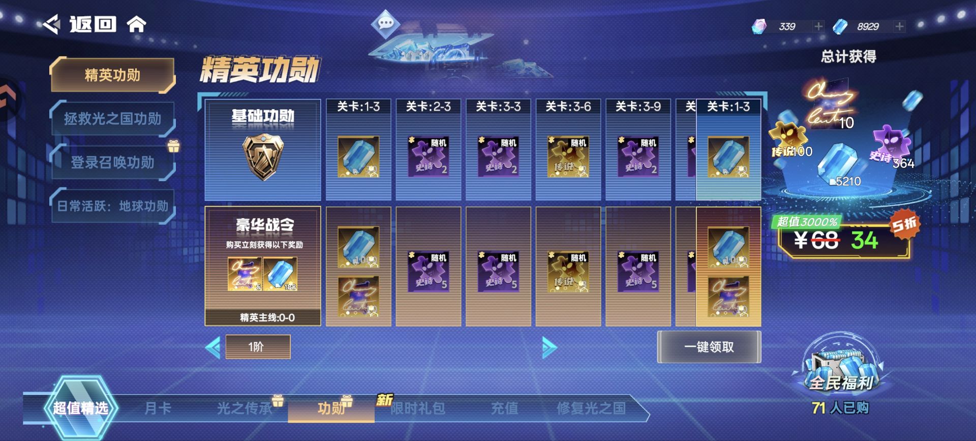这个【精英功勋】对前期角色的升星发育很重要,能够加快传说和史诗角色的快速成型。