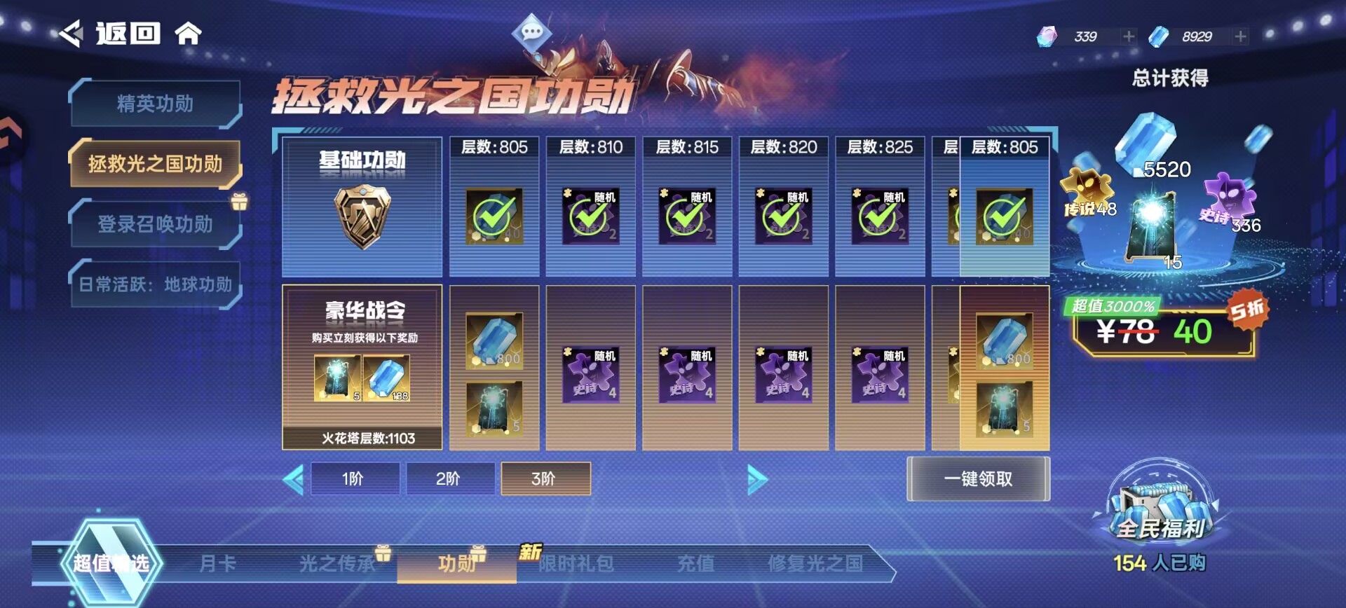 1、终身卡98元必买;大小月卡60+30元必买;精英功勋34元必买;拯救光之国功勋40元必买,后面可以继续买2阶和3阶。