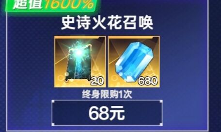 火花召唤卡很重要,抽新角色用的。这个礼包也只能买一次,一共=40个火花卡+1280光元。