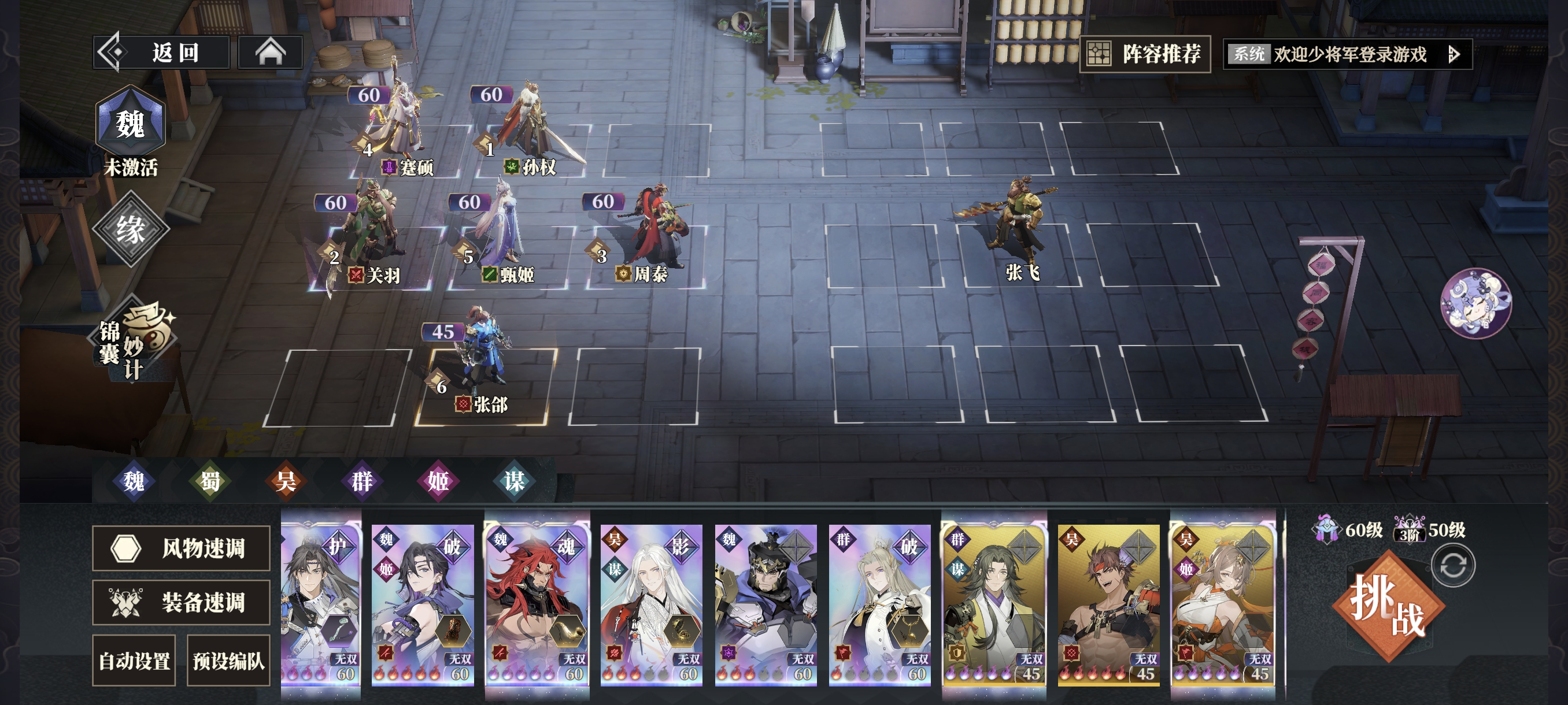 1、本关BOSS张飞血量极高,刚需强力单体武将单点击破,首推袁绍,只通关不满星的话,袁绍练度不需要太高