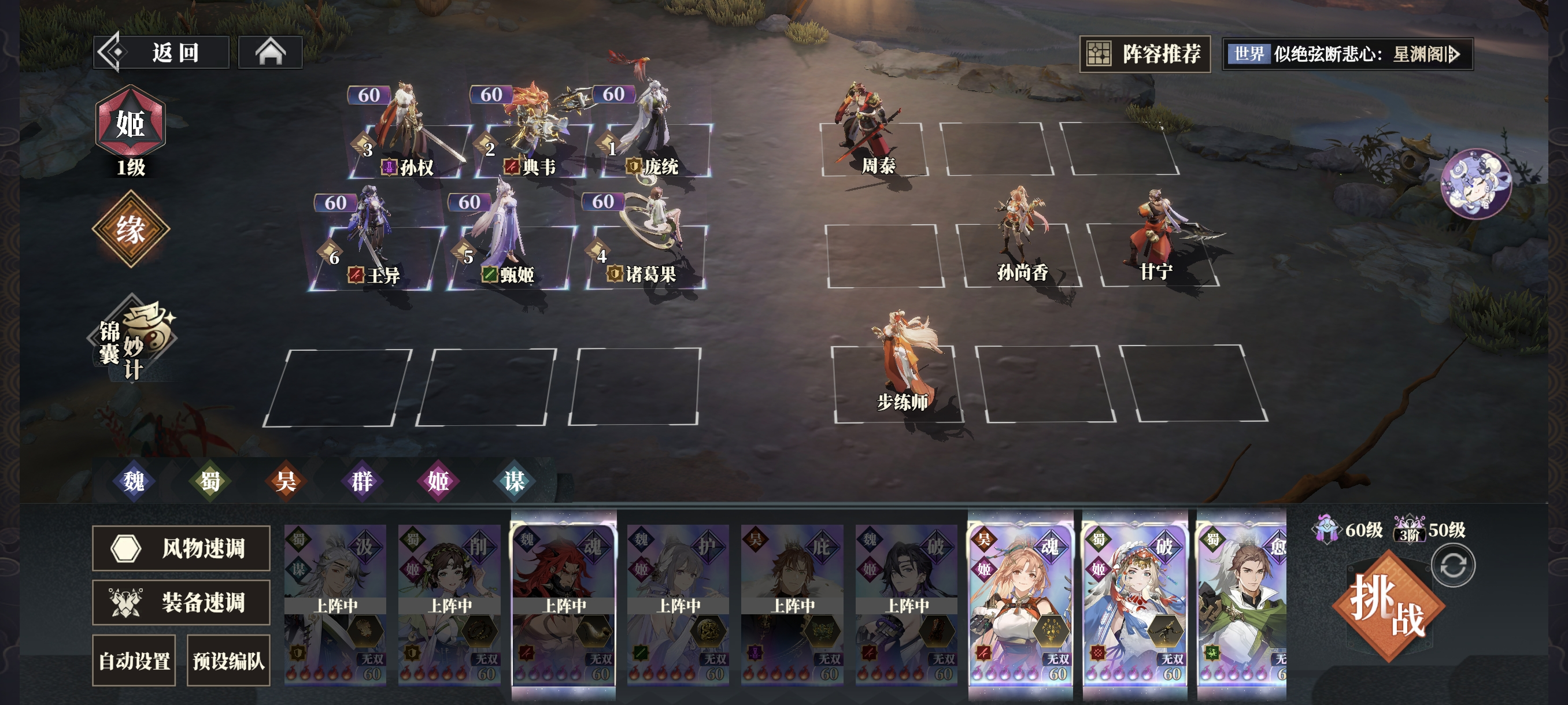 2、如果要满星的话最好是满星袁绍+专武,否则只能等后面加成拿多点再回头来打吧