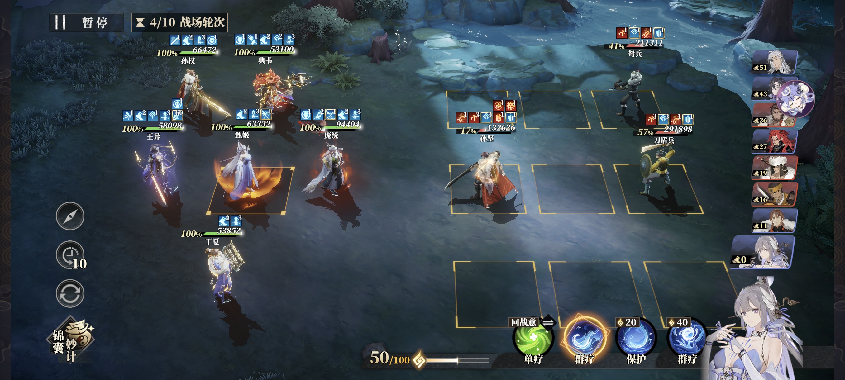 5、甄姬全程有突破技就放,没有就普攻攒战意,孙权带岳峙和蹇硕组成双拉条,虽然拉条较少(单次拉30-50%)但好处是不容易浪费,并且孙权蹇硕可以互相拉条,更快触发孙权被动的全体拉条