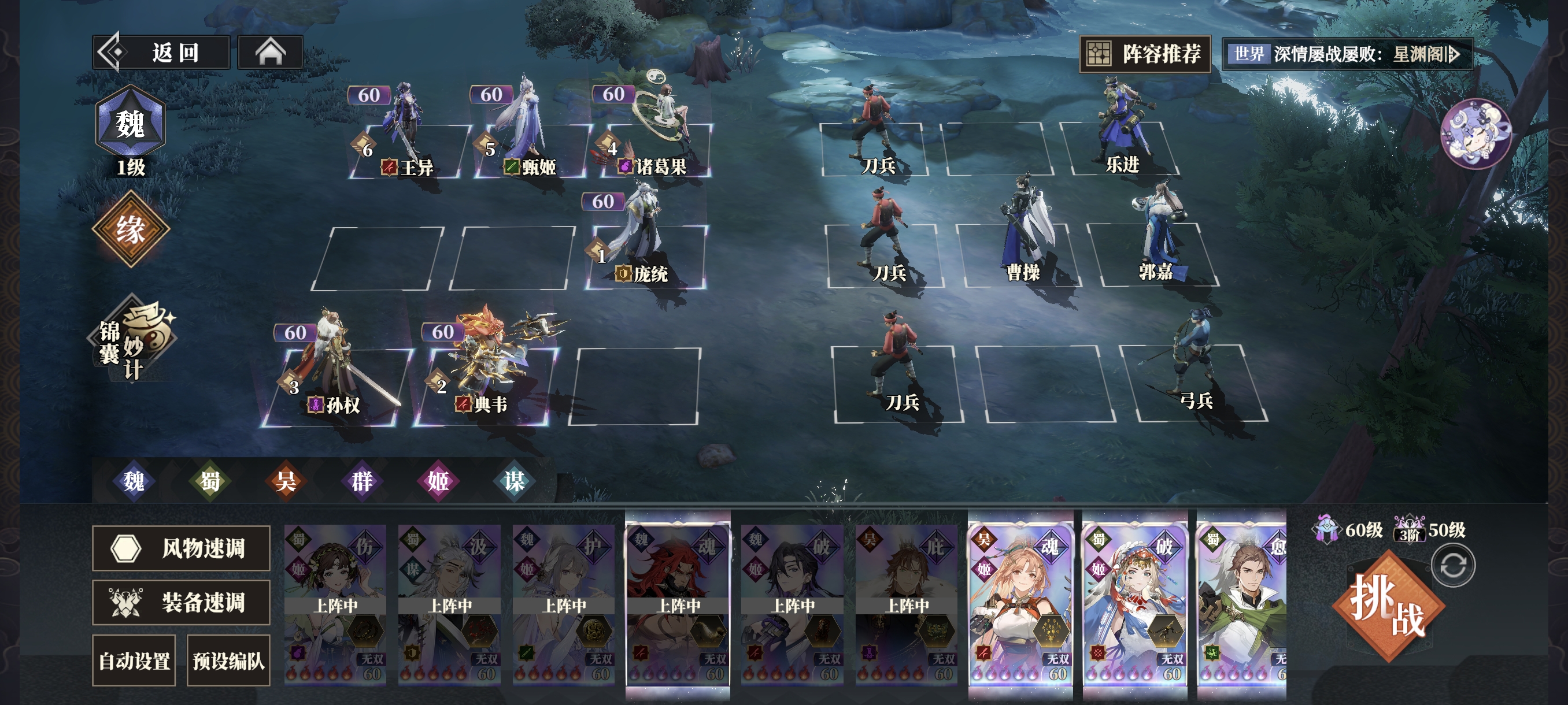 3、杂兵和郭嘉死后曹操和乐进就是白给了。不过满星要求上阵4攻,目前不好打,可以后续加成高了再回头打