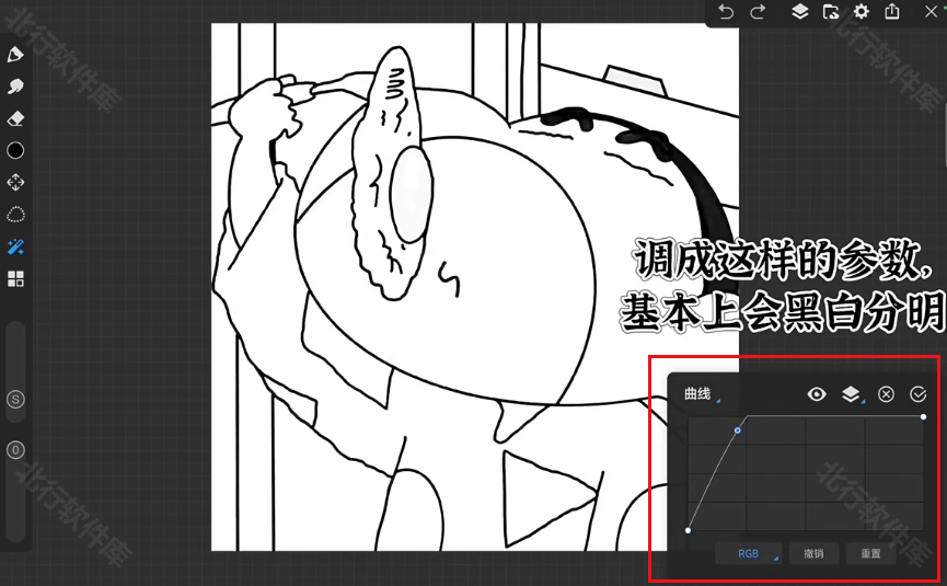 5、按照如图所示的参数进行调整,基本就能彻底黑白分明