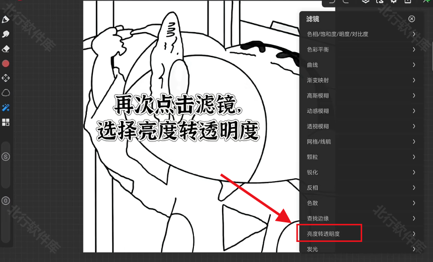 6、再次点击【滤镜】,选择【亮度转透明度】