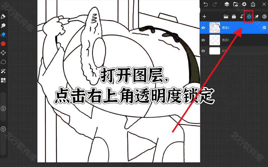 7、打开图层设置,取消混合模式,返回图层,点击右上角【透明度锁定】就能得到透明线稿了