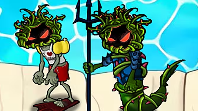 ①每15秒召唤3个缠绕潜水僵尸(分布三行,每行各一个)