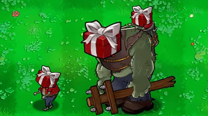 半血扔出礼盒小鬼,死亡后随机生成一只巨人或巨大体型僵尸(数值翻倍)