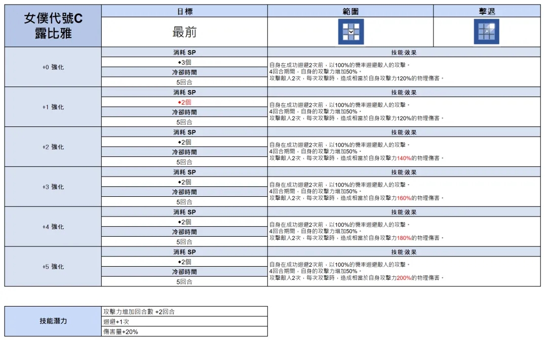 2、仅需2点sp让她在PVP中非常灵活,不管是进攻还是防守都能塞下,目前常用于猫盾队。点出潜能的女仆C可以保证闪避3次攻击,保障自身生存的同时还具备一定的输出能力