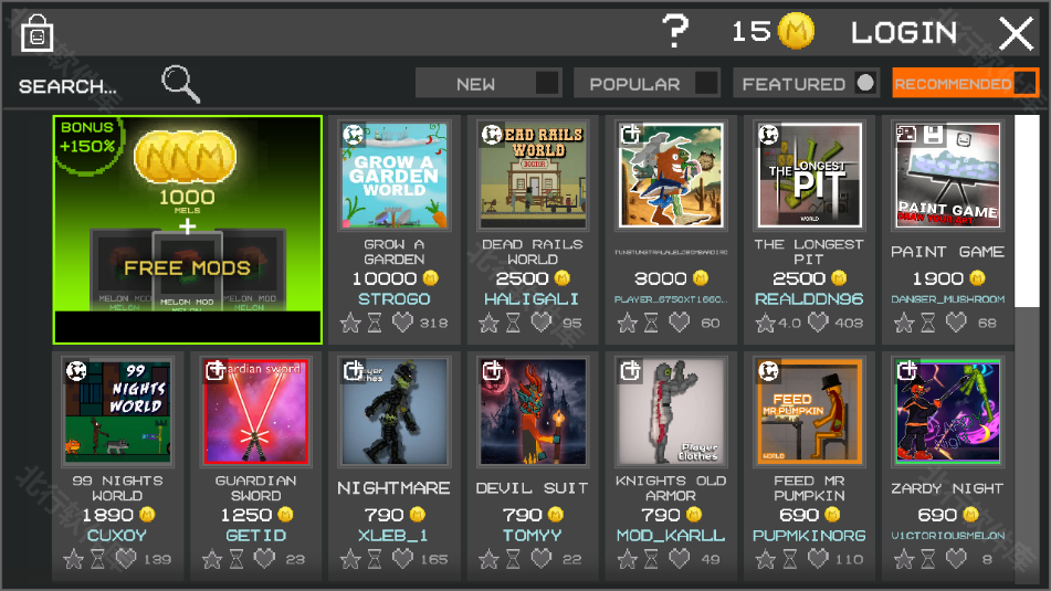 4、可以氪金获得金币,上传自制模组设定下载时需要的金币,如果有人下载则会获得金币