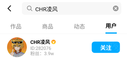 3、但是随着游戏制作进度的变化,游戏名称可能会更改,这就导致上述两种方式在未来都可能让我们找不到正版哈基米世界。因此这里建议直接筛选“用户”,然后搜索作者名“CHR凌风”