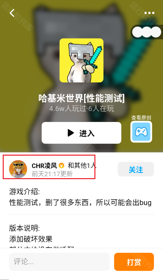 5、在打开游戏后,注意看一下作者是不是CHR凌风,没问题就可以点击“进入”开始游玩了