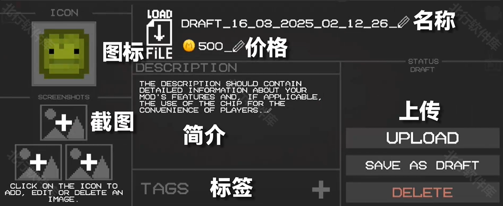 3、点击TAGS添加你的模组标签,方便其他玩家找到