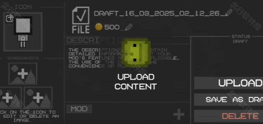 2、如图所示来到上传界面,点击左侧图标导入你的模组图片
